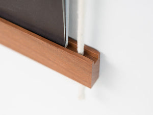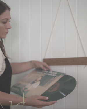 It’s fast and simple to use - just slide the top timber piece up and down the cotton cord and place your record jacket into the slot.